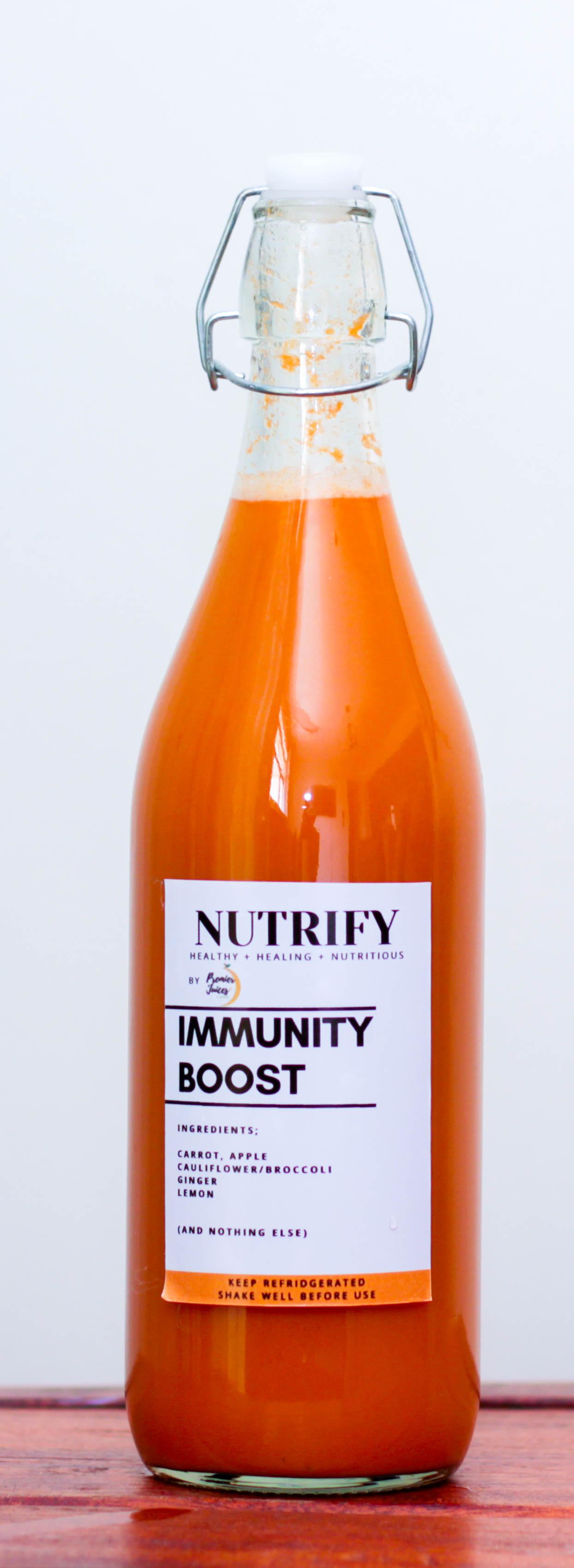 Support your immune system naturally with our Immunity Boost Juice. This vibrant mix of nutrient-dense vegetables and fruit delivers a rich source of vitamin C, beta-carotene, and antioxidants. With ginger and lemon for extra defense, it’s a delicious daily shield against illness. Cold-pressed, 100% natural, and designed to energize and protect.